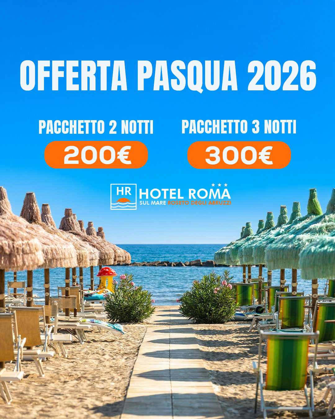 L’Hotel Roma si affaccia direttamente sulla incantevole lunga spiaggia di sabbia bianca di Roseto degli Abruzzi, uno dei centri balneari più rinomati della costa abruzzese.